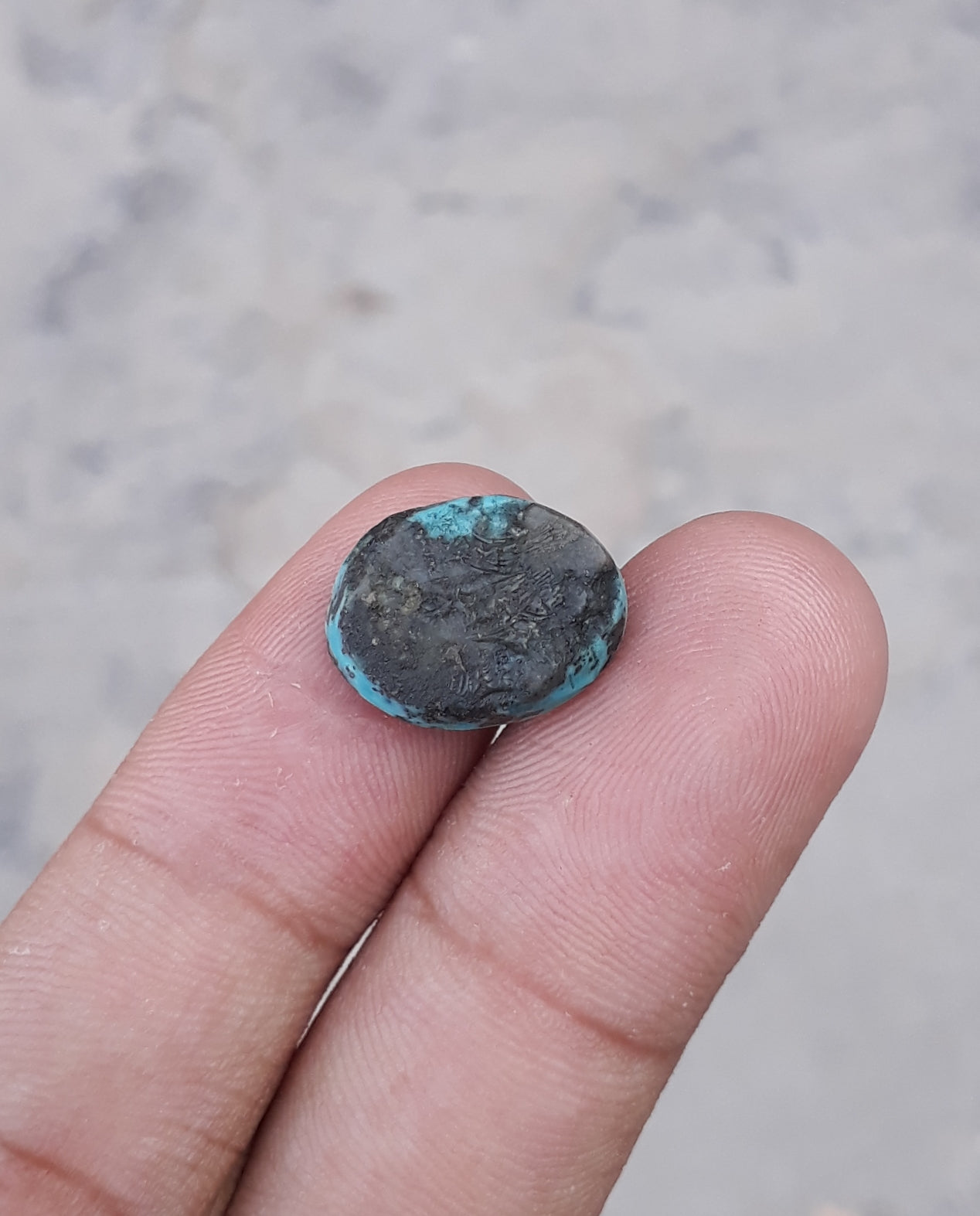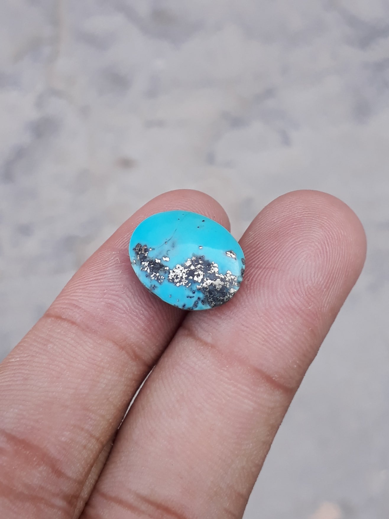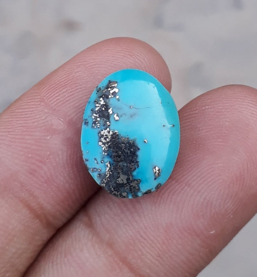 Natural Certified Turquoise with Pyrite - Blue Matrix Turquoise - Shajri Feroza-9Ct-16x13mm