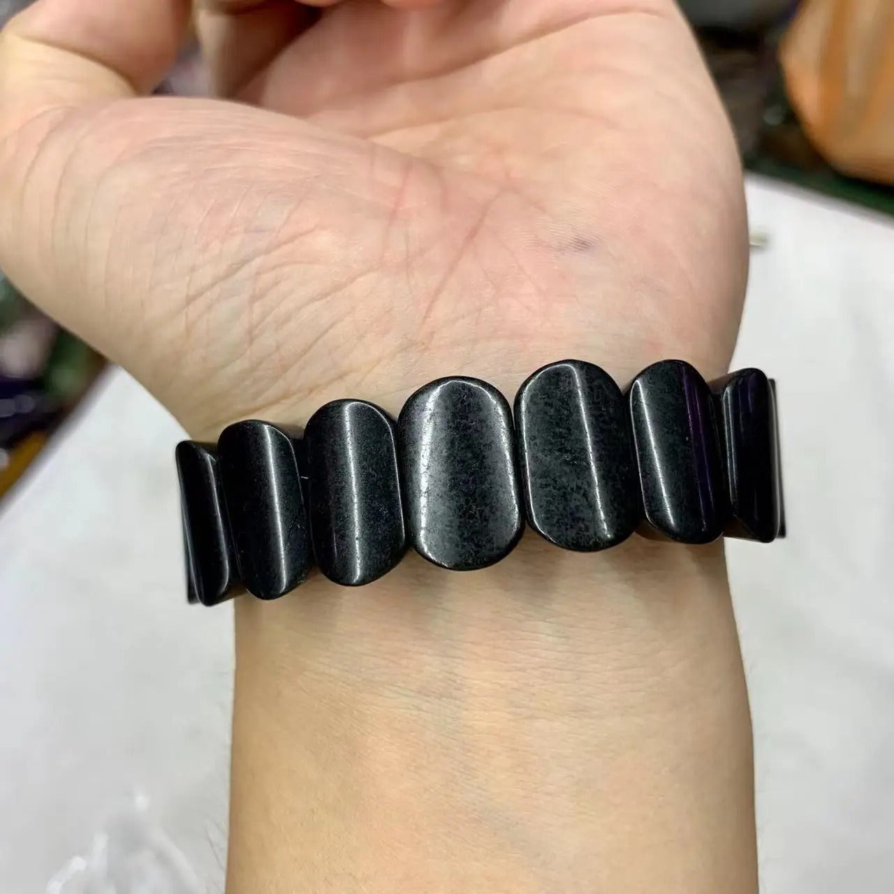 This Natural Brilliance Shungite Gemstone Bracelet offers a unique and stylish option for jewelry. The shungite gemstone offers natural benefits, including enhanced focus and improved energy.