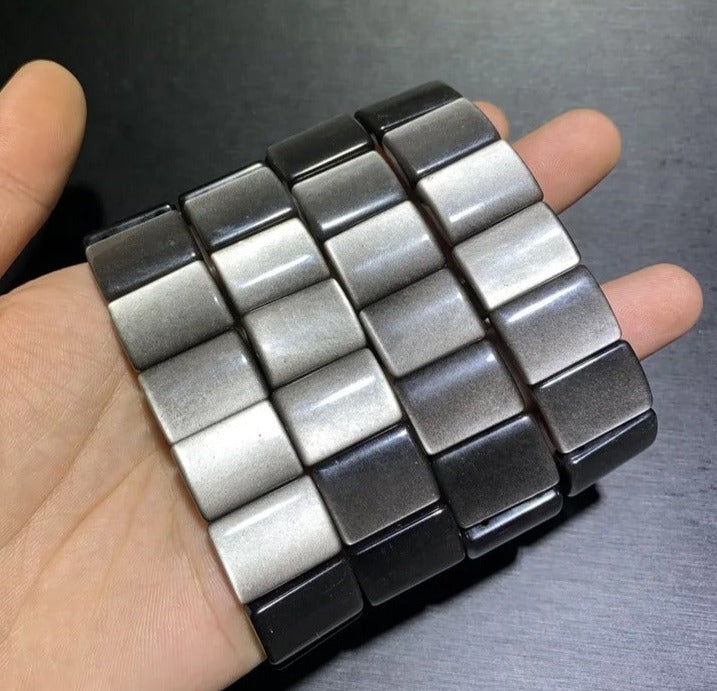 This beautiful natural silver obsidian gemstone bracelet is perfect for any woman. It features natural obsidian stones known for their protective and balancing properties. Wear it and enjoy a balanced and harmonious energy. Crafted with care, this bracelet is sure to make a statement.