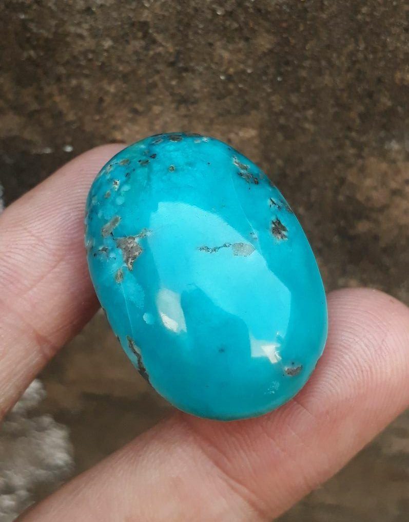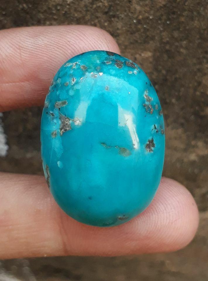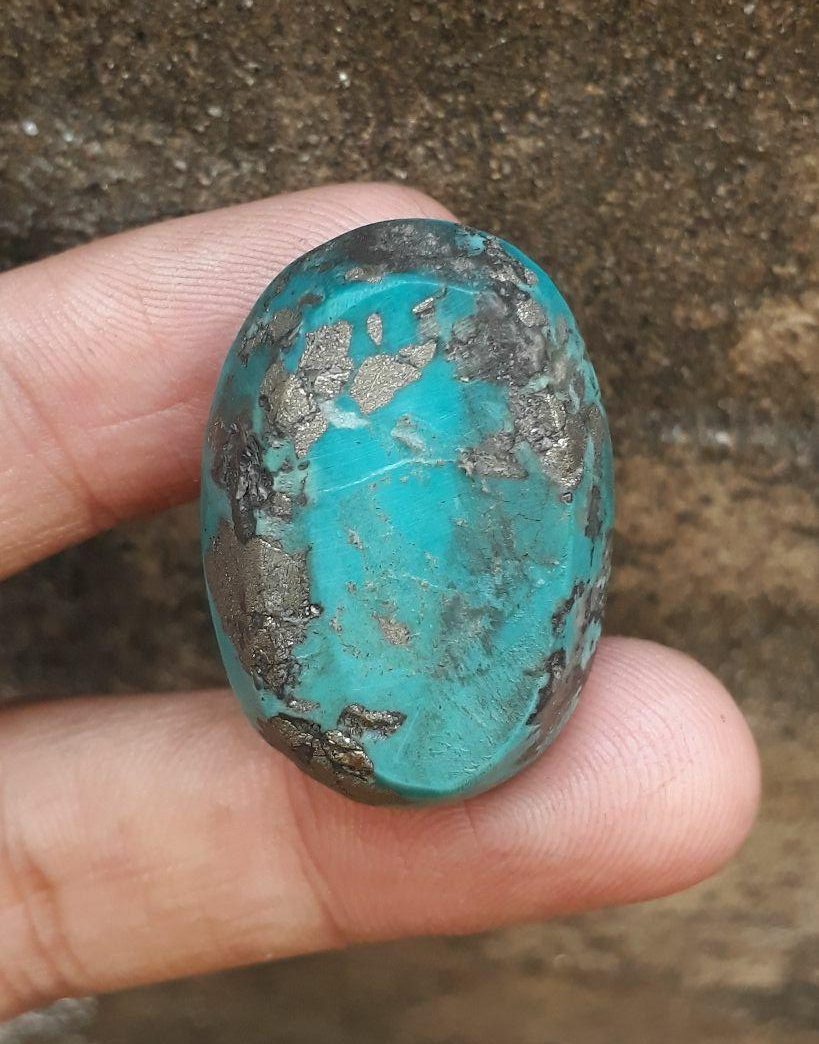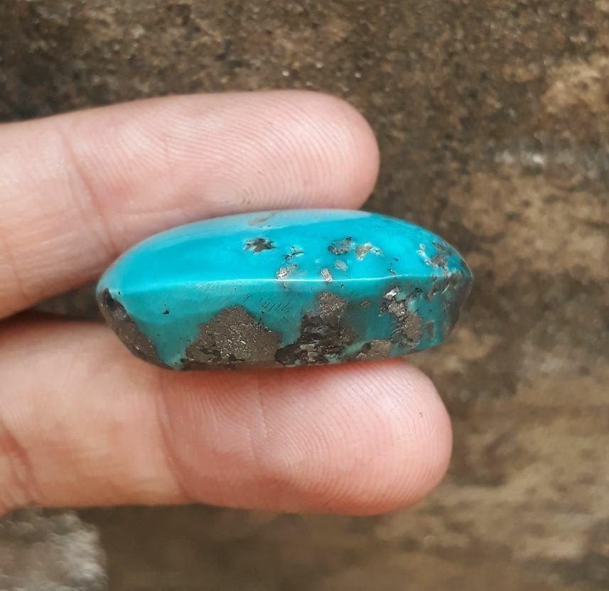 This Natural Turquoise with Pyrite is an exquisite example of the art of lapidary. This Blue Matrix Turquoise is expertly crafted to bring out its beautiful natural hue, with a lustrous oval shape of 33x23mm and a weight of 72 ct. Perfect for any collection.