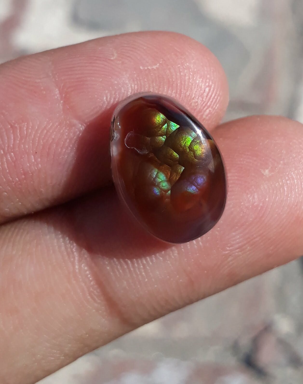 This rare and beautiful Mexican Fire Agate cabochon is a rare gemstone, even rarer than diamonds. Perfect as a gift, it has a polished and natural finish and measures