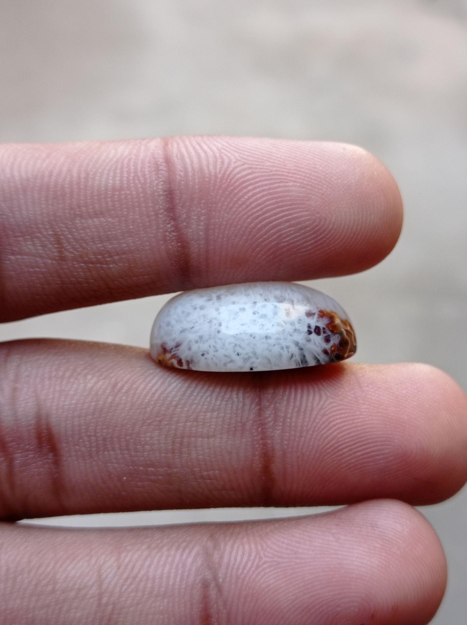 This White Enhydritic Agate Cabochon is an impressive 25x19x9mm in size and is studded with a stunning yellow patch. It is carefully crafted through a unique enhydritic process to bring out its true beauty. Make it yours today and enjoy the beauty of Sulaimani Aqeeq.