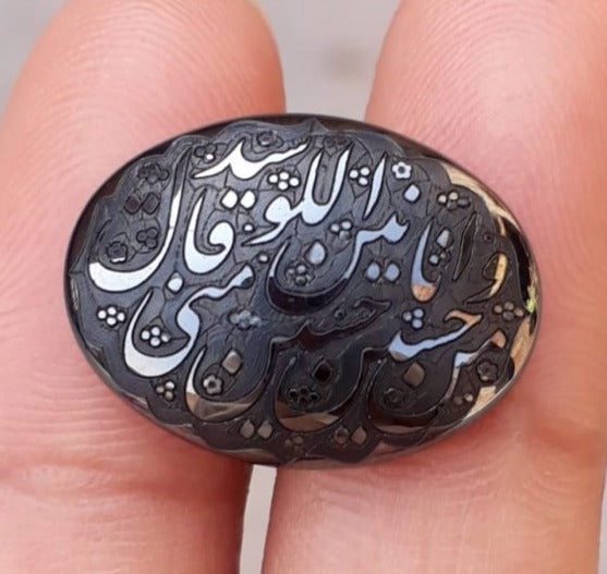 23ct Hematite Cabochon- Hadeed Stone - Engraved Hadeed Cheeni Cabochon -20x15mm