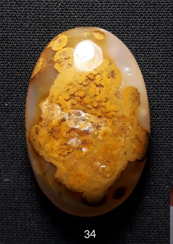 This unique cabochon is cut from premium gold jasper, a type of jasper with distinctive golden and white patches. From the Balochistan region.