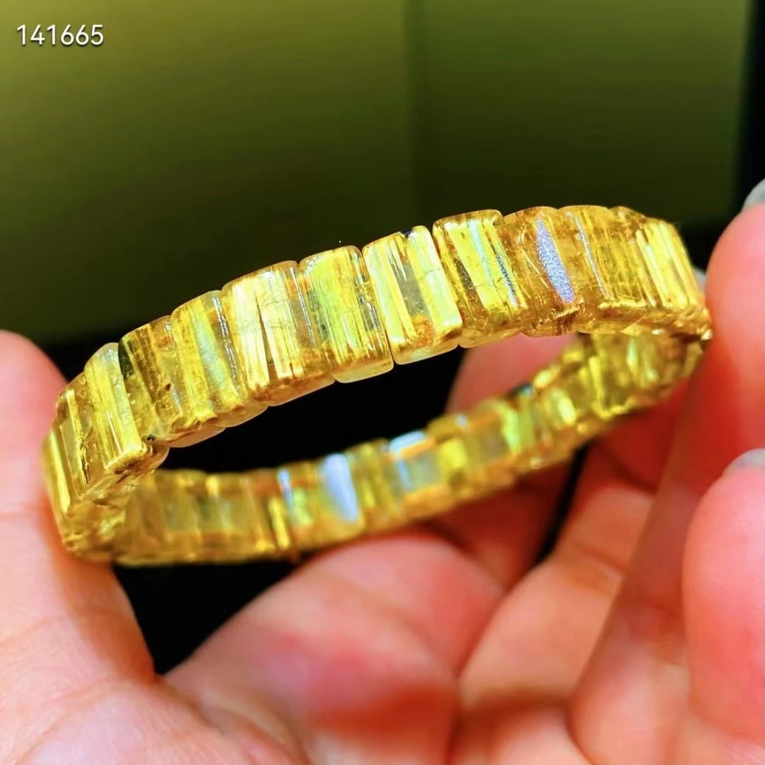 This sleek Natural AAA Gold Rutilated Quartz Gemstone Bracelet is the perfect combination of style and substance. Crafted with natural, AAA-grade quartz gemstones, this bracelet is sure to make a statement with its unique gold rutilated design. This sophisticated bracelet is perfect for any occasion.