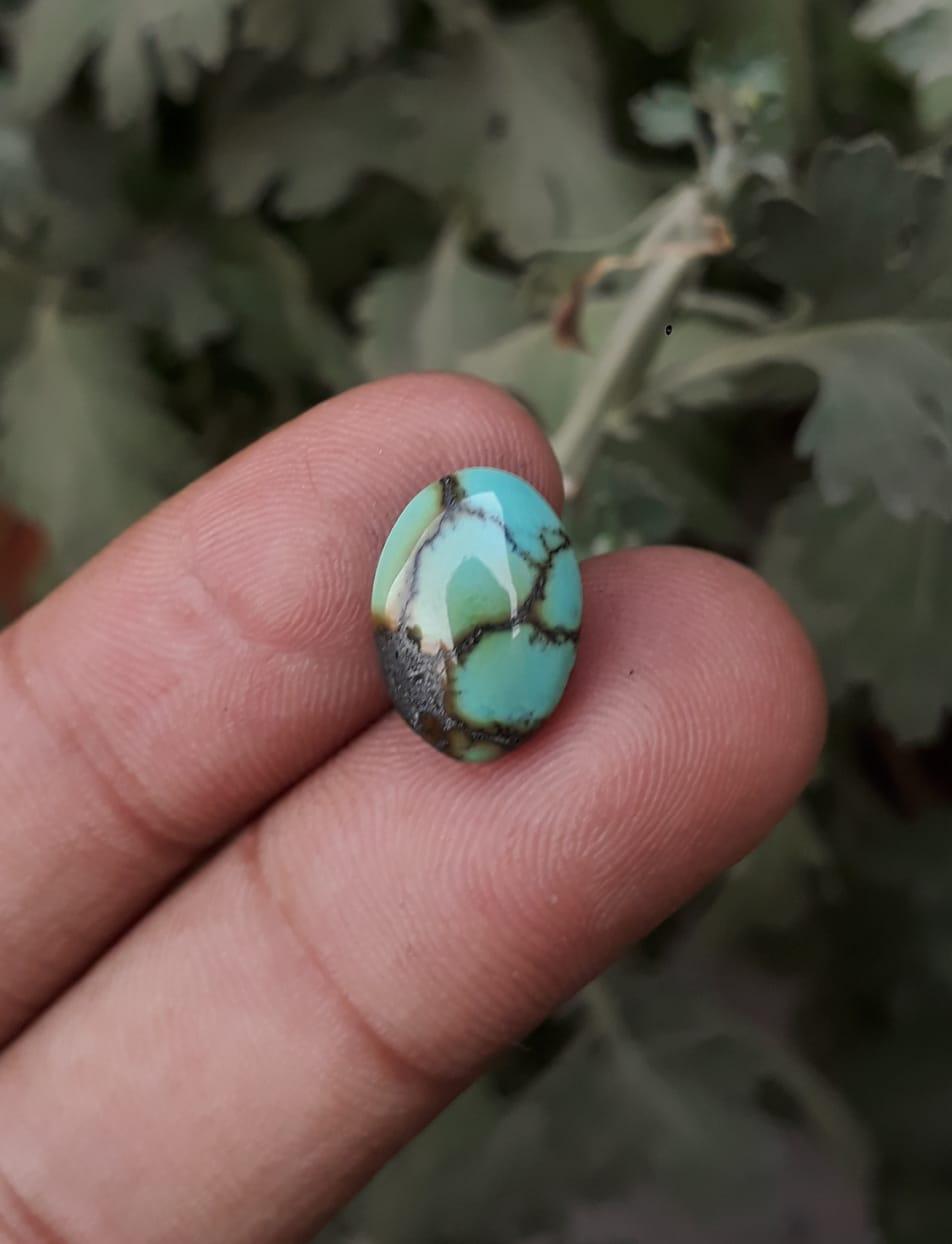 This natural turquoise stone is a rare find. It has a beautiful green matrix and is made of real Shajri Feroza, weighing 5.1 carats and measuring 13.7x10mm. Its natural beauty will make it an eye-catching addition to any jewelry design.